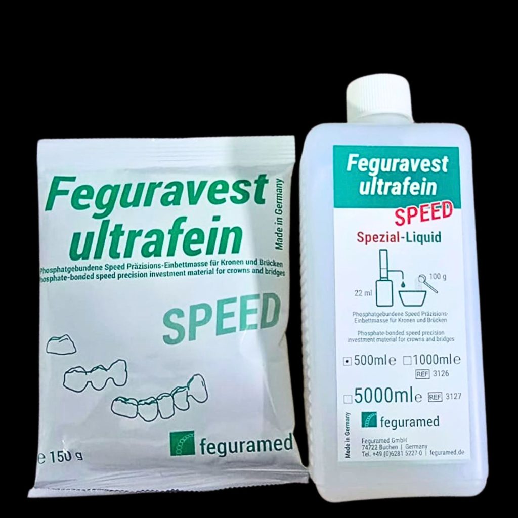 Revestimiento indicado para colado de gran precisión para coronas y puentes de materiales nobles y cerámica prensada, de calentamiento ultra rápido.